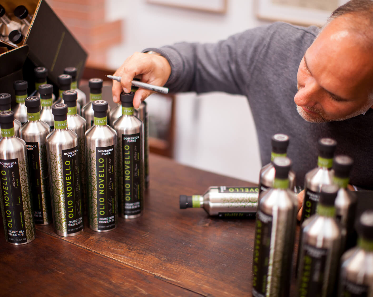 Each olive tree is hand-harvested at selected moments throughout autumn. Novello di Notte is first, in late September, under the cool cover of nighttime, protecting the fruit from sun and heat. Novello is next in line in early October. Novello-style oil is a favorite among Italians, characterized by fresh and grassy aromas. Harvesting for Reserva begins in mid- or late October when the fruit is at the peak of ripeness for this classic olive oil and continues into November. Olives for all Domenica Fiore oils are pressed within four hours of picking, and cold-pressed in small batches to preserve both flavor and integrity.