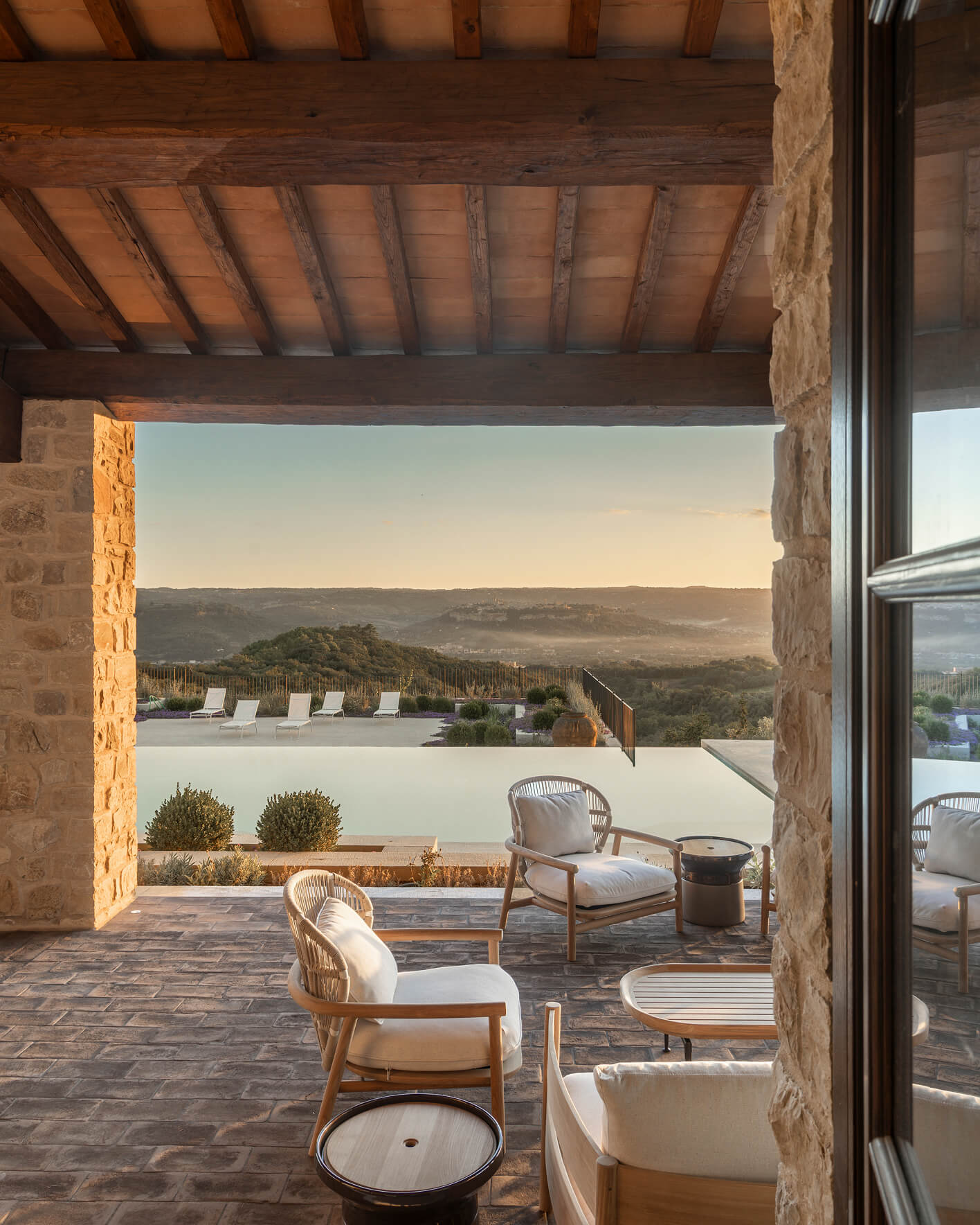 Mornings begin with golden light pouring over the hills, evenings end with wine under the stars, and not a sound but the hush of the countryside, always with a breeze swaying through the richly draped windows.